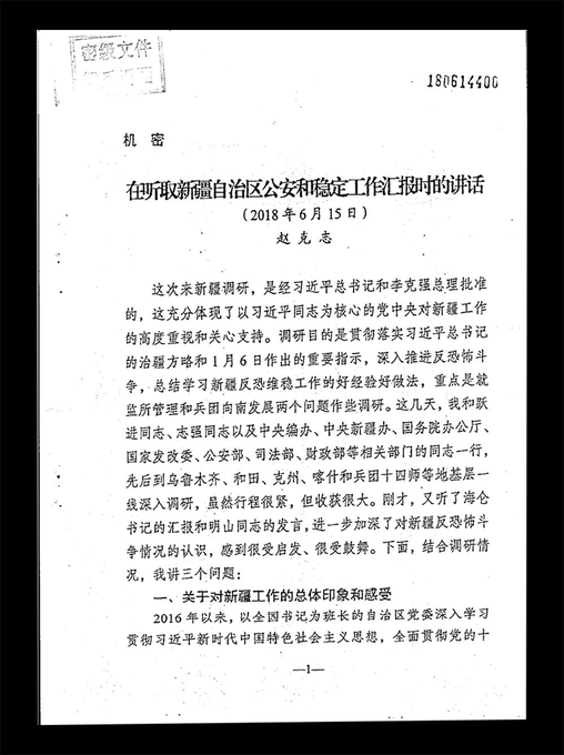 Em documentos encontrados nesses servidores, está discurso de Zhao Kezhi, ministro da Segurança Pública, afirmando que dois milhões de pessoas haviam sido infectados por “pensamento extremista” em Xinjiang, e que o Xi Jinping havia dado instruções para construção de novos campos.